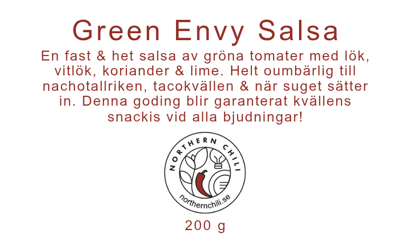 En fast & het salsa av gröna tomater med lök, vitlök, koriander & lime. Helt oumbärlig till nachotallriken, tacokvällen & när suget sätter in. Denna goding blir garanterat kvällens snackis vid alla bjudningar!