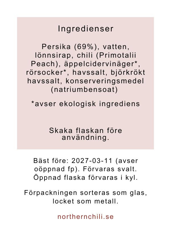 En het käftsmäll med fermenterade persikor & Primotalii Peach. Lätt sötma från äkta lönnsirap samt en fruktighet som passar till allt från tacos till kyckling.