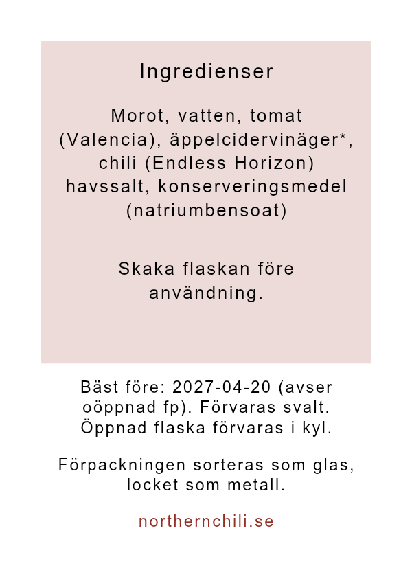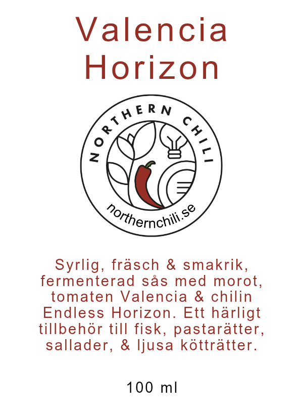 Syrlig, fräsch & smakrik, fermenterad sås med morot, tomaten Valencia & chilin Endless Horizon. Ett härligt tillbehör till fisk, pastarätter, sallader, & ljusa kötträtter.
