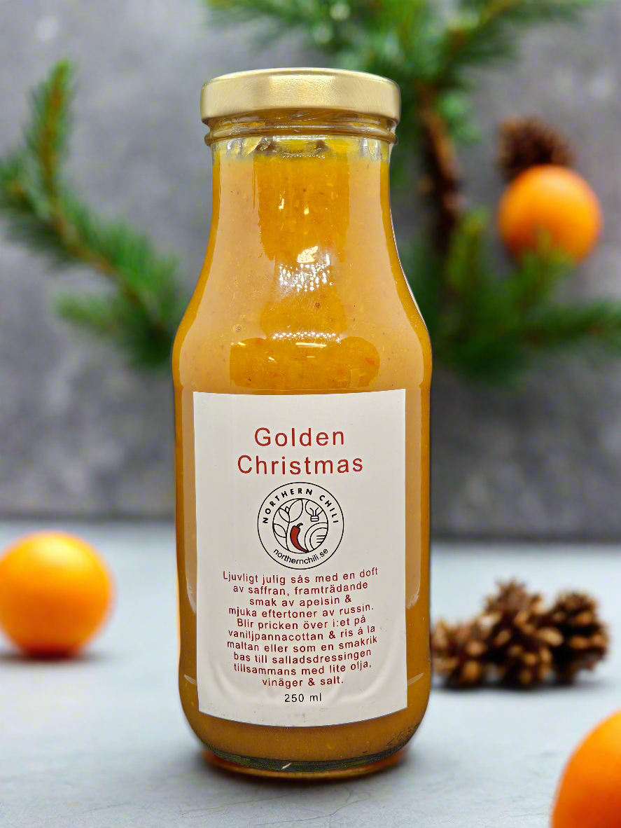 Ljuvligt julig sås med en doft av saffran, framträdande smak av apelsin & mjuka eftertoner av russin.